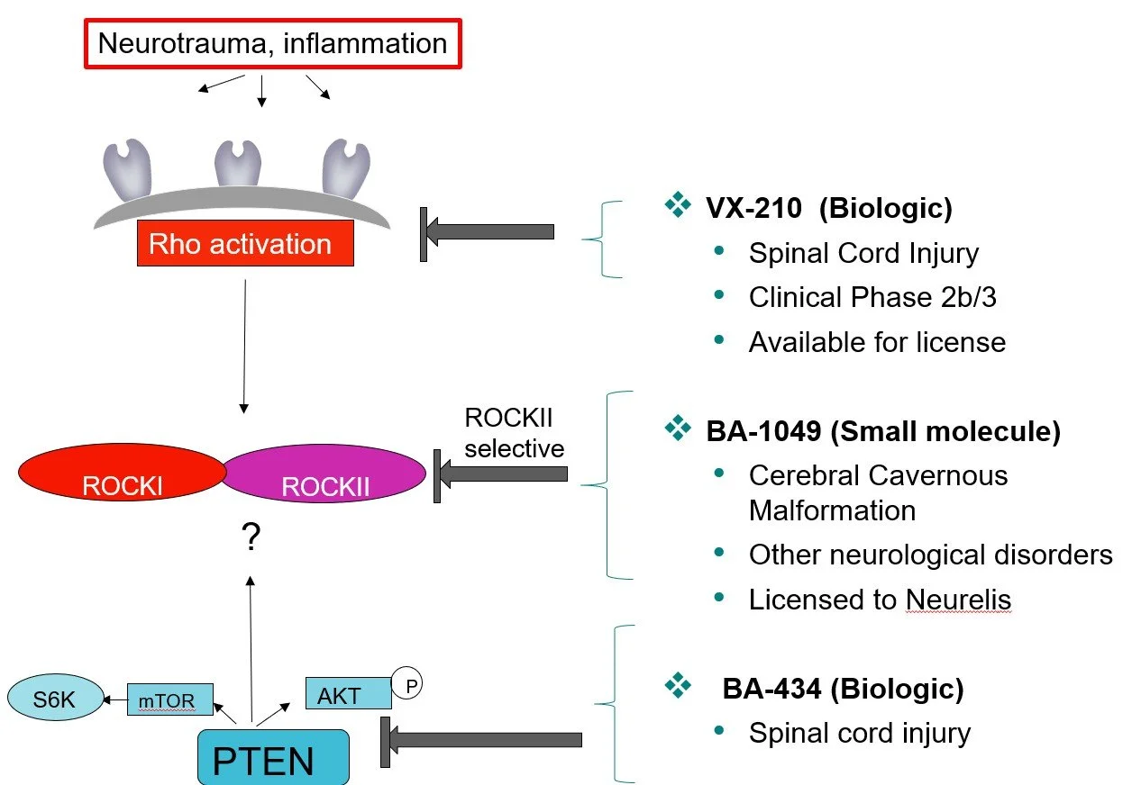 The Rho signaling pathway acts as a central control system inside cells, regulating their cell shape and how they move, grow, and interact with other cells. When Rho signaling equilibrium is disrupted, there is a cascade of events that contribute to disease. By targeting different points along the Rho signaling pathway, we can tailor therapies to the underlying biology of neurotrauma and neurovascular disorders.