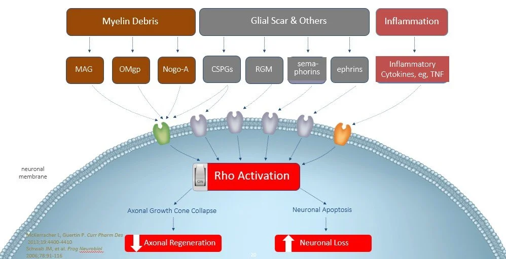 Rho signaling governs key mechanisms of neuronal repair and blood–brain barrier integrity that are disrupted in disease.